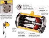 - Approximately 1/8 cfm required per cycle (one fiftieth of that of an air hoist) means very low energy costs Clean, oil-free operation